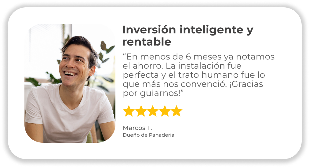 Nuestro equipo analiza tu consumo y te ofrece una solución personalizada que se adapta a las necesidades específicas de tu negocio, sin complicaciones ni inversiones iniciales.